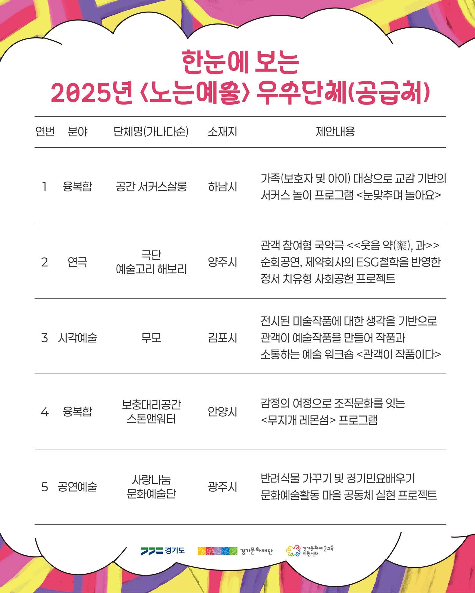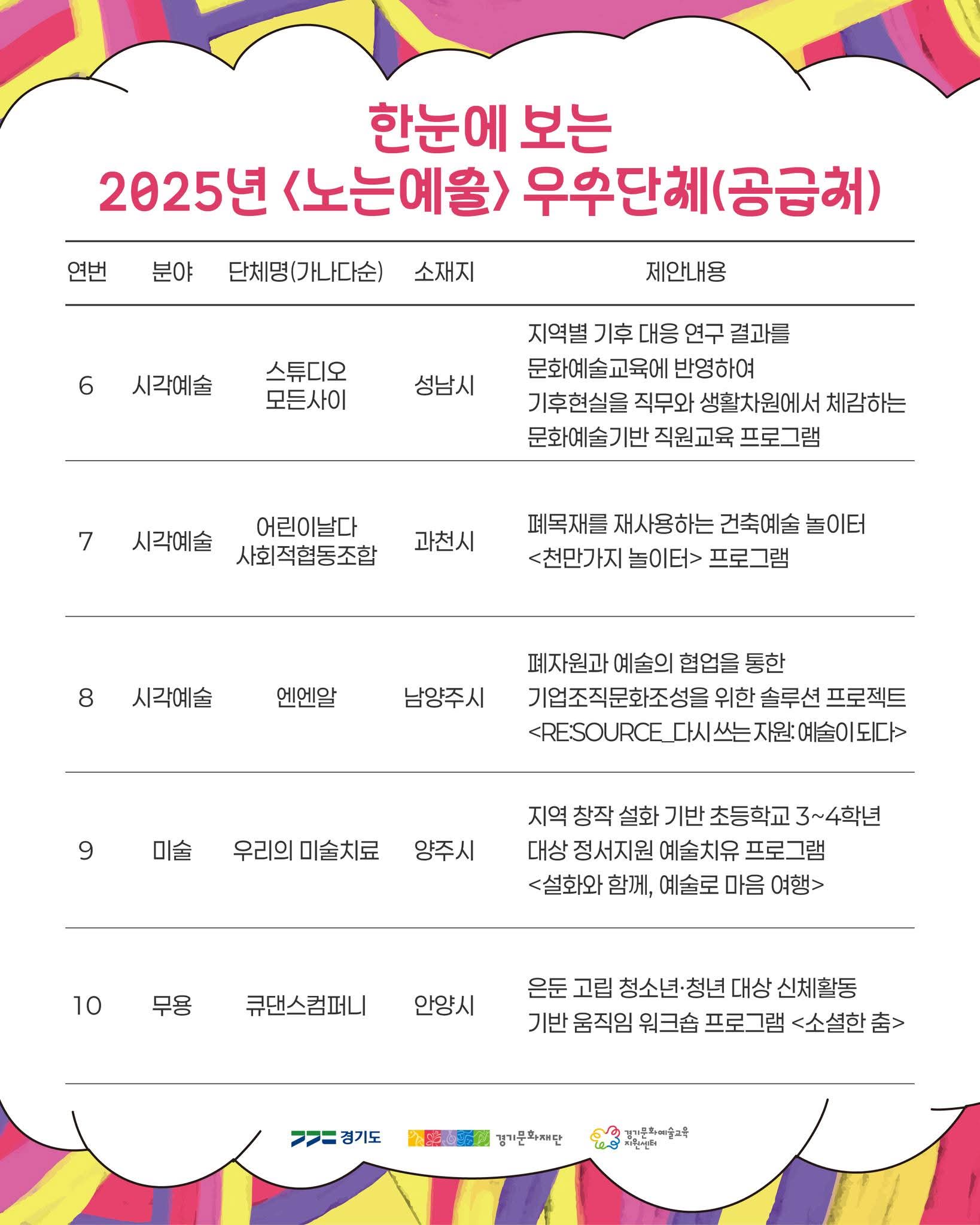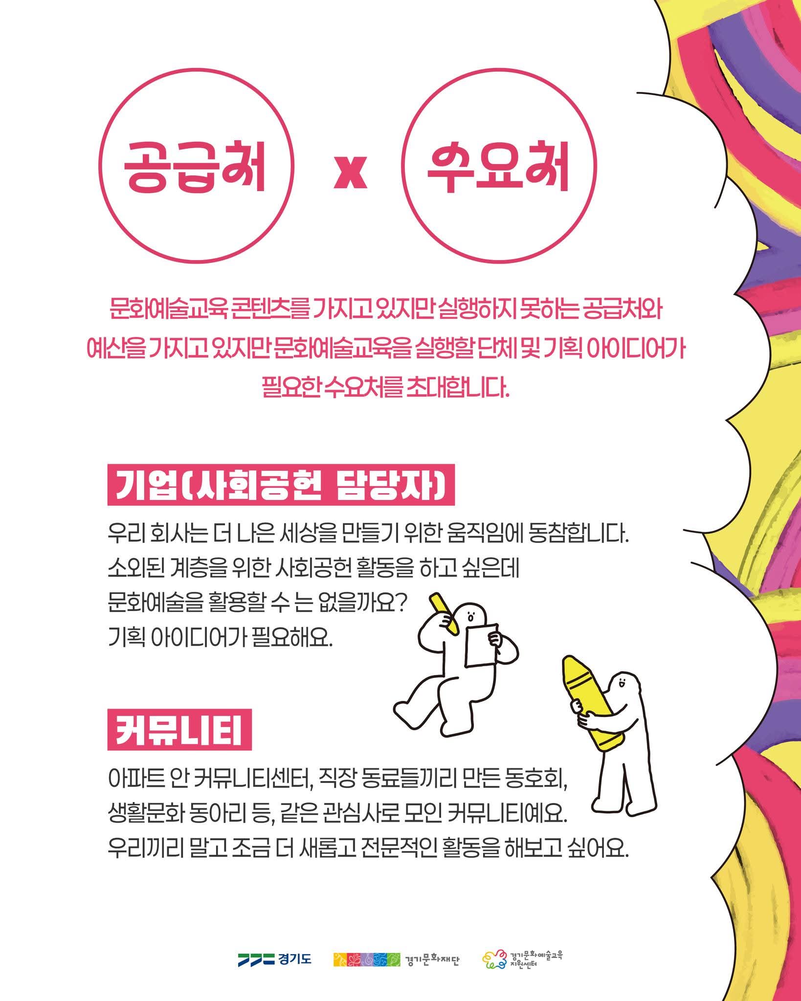 - 예술가 집단, 사회적기업·협동조합, 문화예술교육 단체