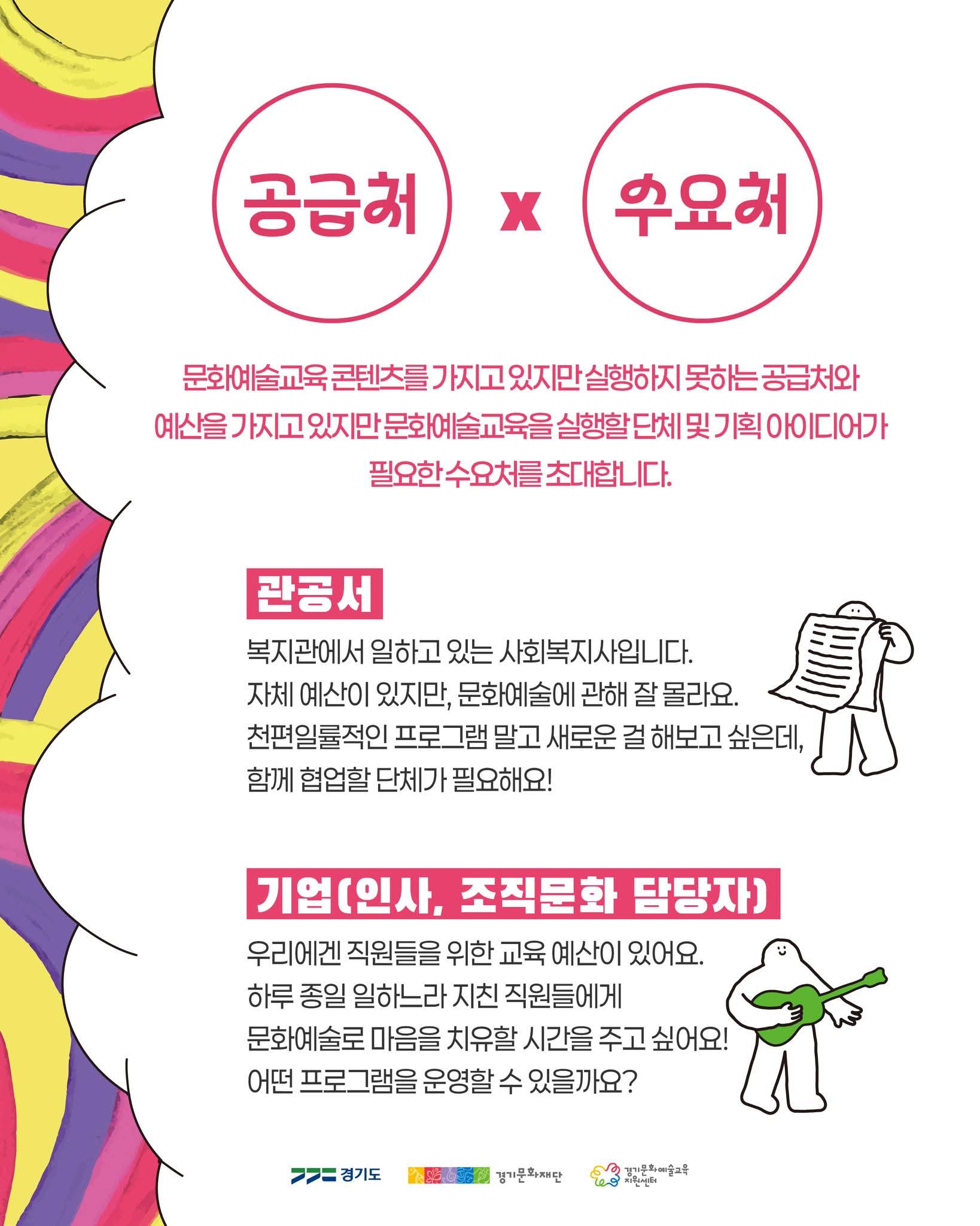 실행 가능한 예술교육 프로그램을 가진 기획자·단체를 한자리에서 매칭하는 네트워킹 행사입니다.