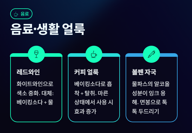 👉 얼룩 ‘종류’에 맞는 재료를 쓰는 것이 핵심입니다.