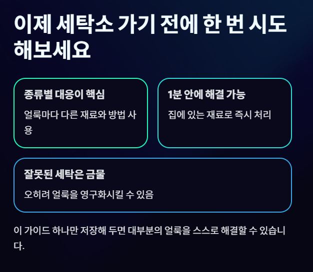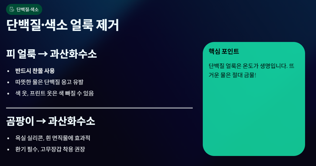📌 얼룩 제거 실패를 막는 핵심 주의사항 (중요)