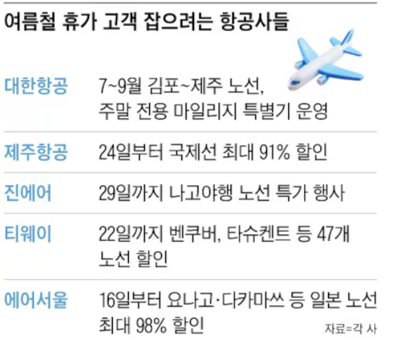 주요 항공사별 여름 성수기 특가 프로모션