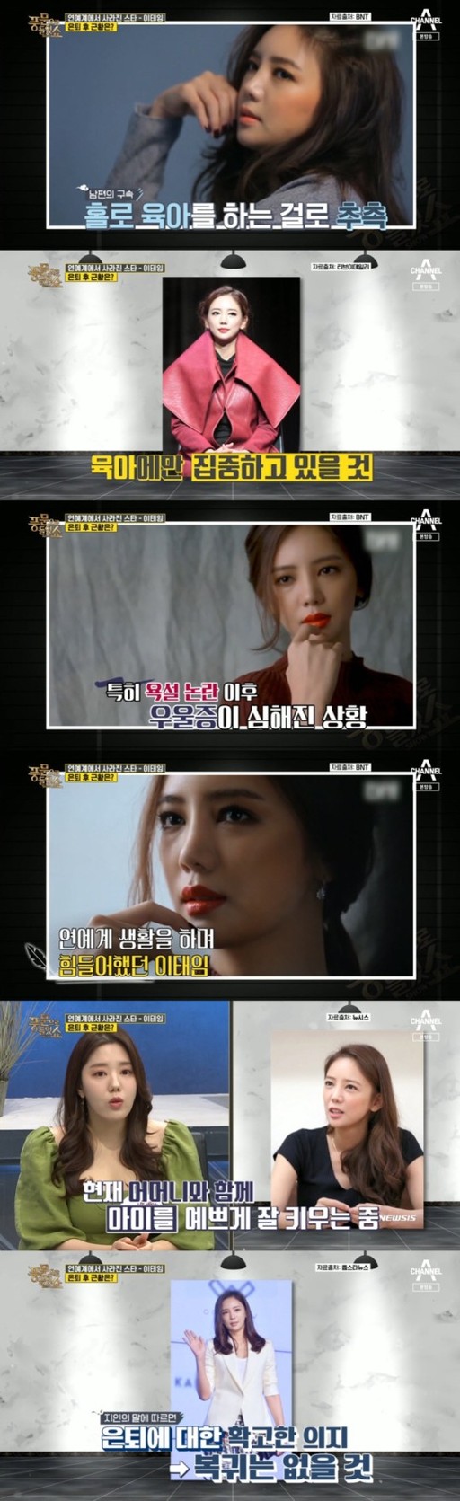 A. 이태임은 2018년 연예계를 떠난 뒤 결혼과 출산을 거쳐 현재는 일반인으로 지내고 있습니다.