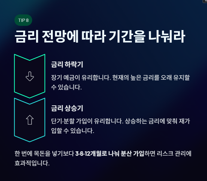 8️⃣ 금리 전망에 따라 기간을 나눠라