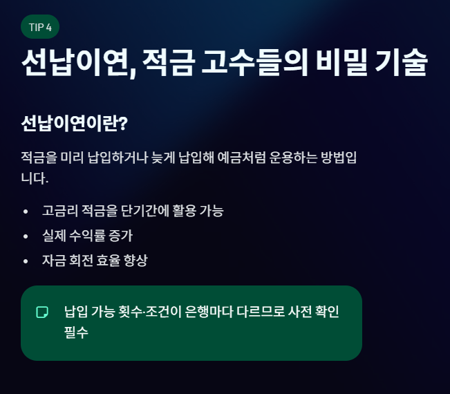 4️⃣ 선납이연, 적금 고수들의 비밀 기술