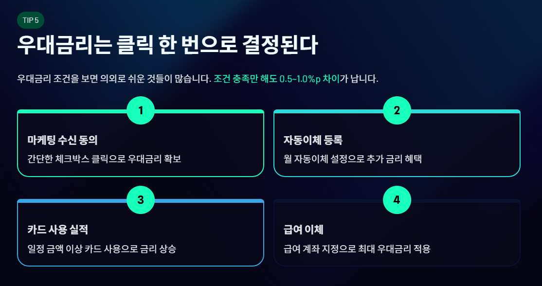5️⃣ 우대금리는 클릭 한 번으로 결정된다