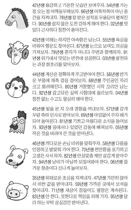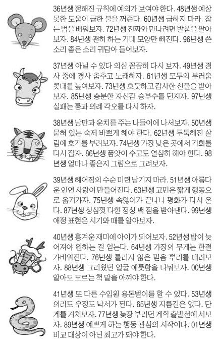| 닭띠 | 눈앞 이익보다 전체 흐름을 보는 안목이 필요한 날. | 조금 손해 보는 선택이 길게 보면 득이 될 수 있습니다. |