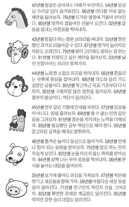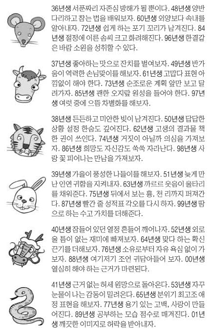 - 띠별 운세: 동양 12간지, 소통·추진·계획·광고·신중·변화