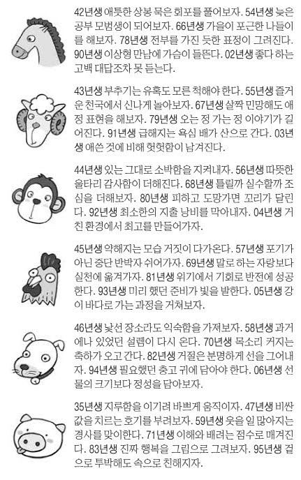 | 말띠 | 노력 결실·평온유지 | 조급함 금지, 노력에 비례한 결과 |