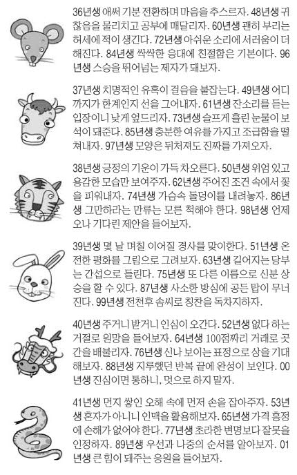 • 띠별 운세: 점검·분석·실속·인내·정서관리