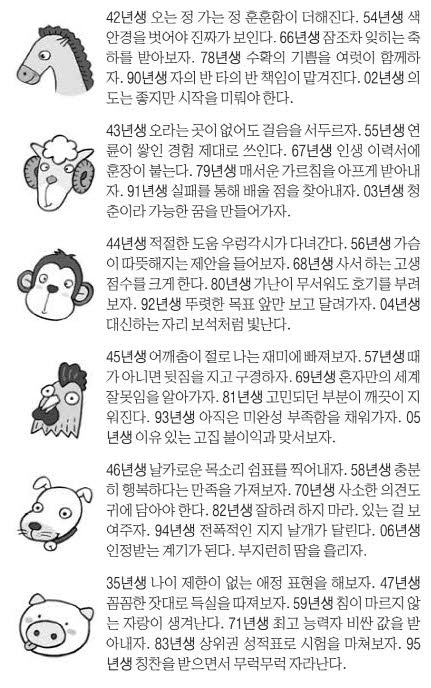 | 용띠 | 희망혼합, 조율 | 기회확보, 친구와 의논 |