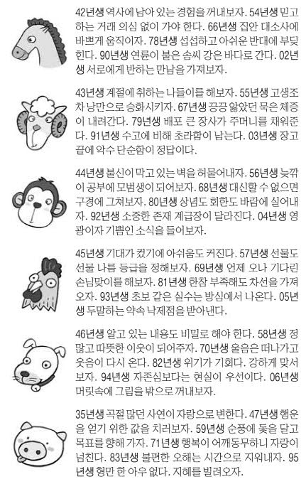 | 닭띠 | 재물·가족운 | 가족 소통, 소득 체크 |