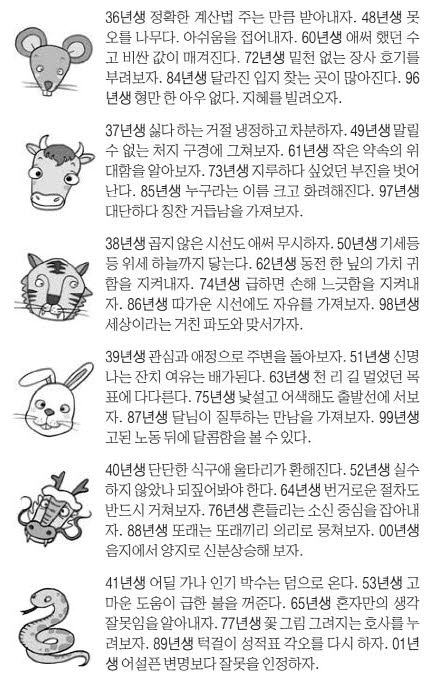 띠별 오늘의 한 줄 운세