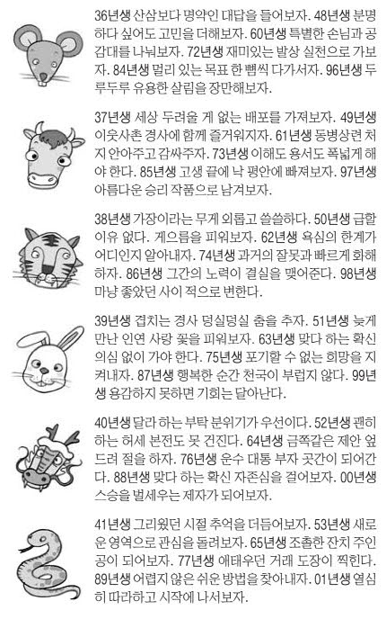 2025년 7월 1일, 12간지(띠)별 오늘의 운세