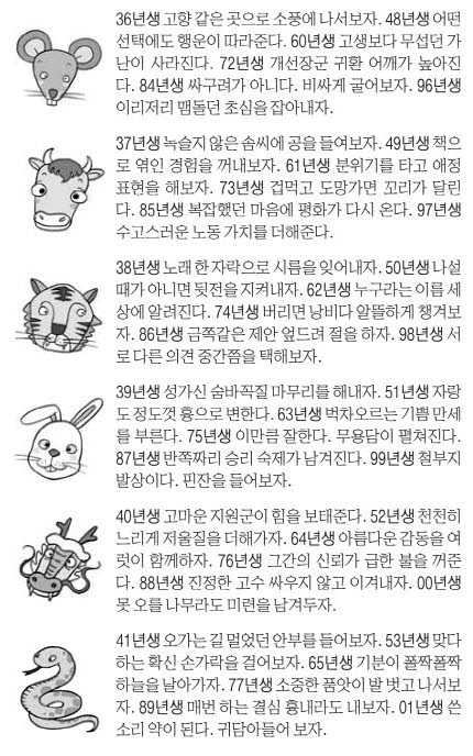 | 쥐띠 | 불평보다 계획, 변화에 도전 | 새로운 시도·기회의 재발견 |
