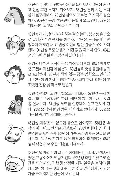 | 원숭이띠 | 기회와 변화 | 낯선 정보 적극 수용, 인맥 점검 |