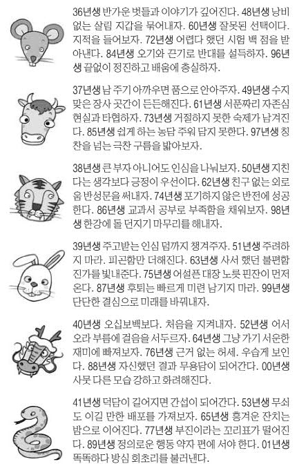 - 본인 띠 확인: 띠별 행운 포인트와 주의점을 꼼꼼히 체크하세요.
