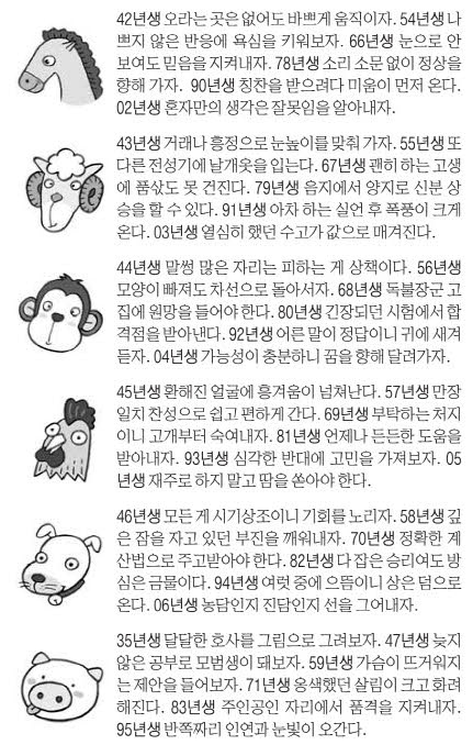 | 개띠 | 도움·협력, 인간관계가 열쇠 | 지인과 네트워킹, 정보 공유 |