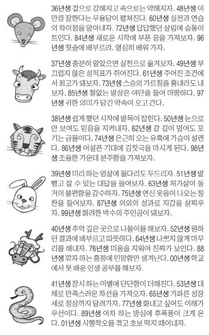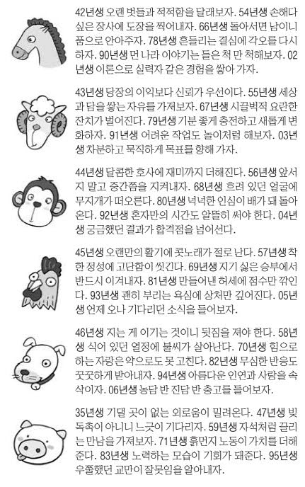 • 띠별 운세: 동양 12간지 운세로 계획, 건강, 금전, 대인관계 중심