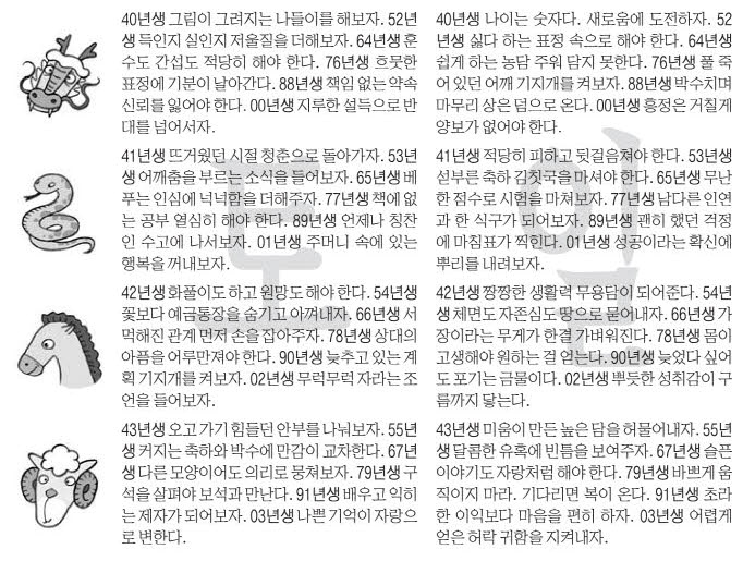 | 호랑이띠 | 성공과 실패, 균형 중시의 날 | 무리하지 말고 느긋한 자세, 가정에 집중 |