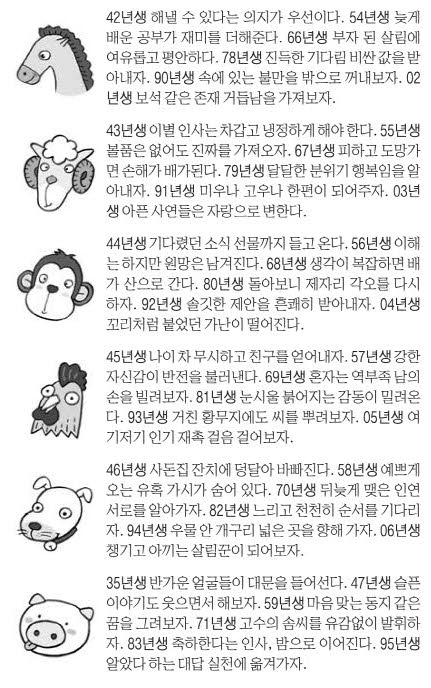 | 닭띠 | 결과보단 과정, 작은 실수 극복 필요 | 반복점검과 협의, 꼼꼼하게 확인 |