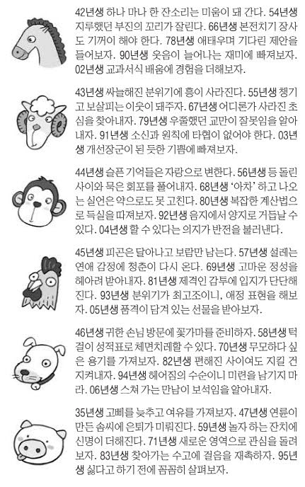 말띠정보수집·실전 집중, 행동정비동료와 정보교류, 반복 점검, 과감한 행동은 피함