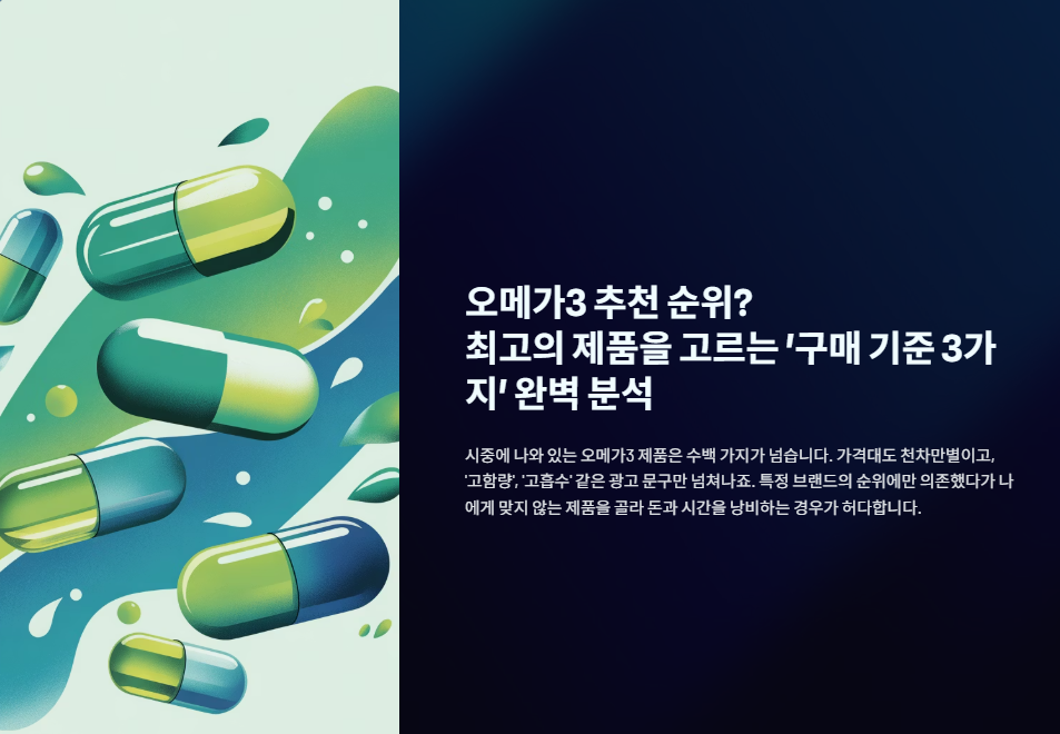시중에 나와 있는 오메가 3 제품은 종류가 너무 많아 어떤 것을 골라야 할지 막막합니다. 가격대도 천차만별이고, '고함량', '고흡수' 같은 광고 문구만 넘쳐나죠. 특정 브랜드의 순위에만 의존했다가 나에게 맞지 않는 제품을 골라 돈과 시간을 낭비하는 경우가 허다합니다.