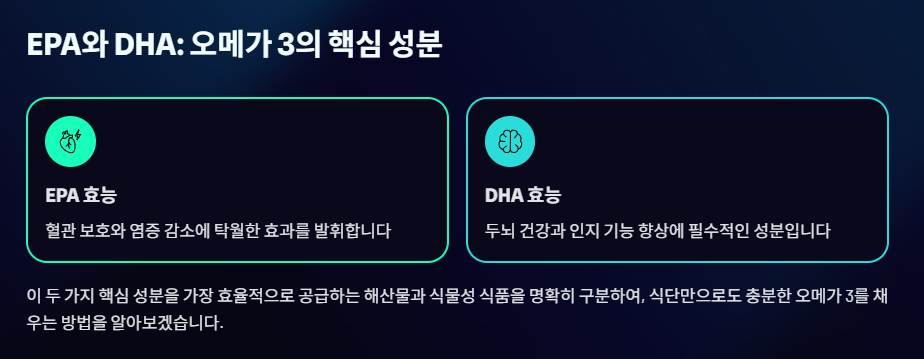 이 글에서는 오메가 3의 두 가지 핵심 성분(EPA, DHA)을 가장 효율적으로 공급하는 해산물과 식물성 식품을 명확히 구분하여 제시합니다. 이 가이드를 통해 더 이상 영양제에만 의존하지 않고, 식단만으로도 충분한 오메가 3를 채우는 방법을 완벽하게 숙지하세요.