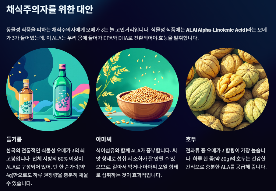 2. 채식주의자를 위한 대안: 식물성 오메가 3의 보고 (ALA 중심)