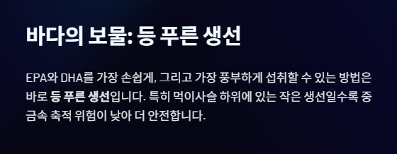 1. 바다의 보물: EPA와 DHA의 황금 공급원 (등 푸른 생선)