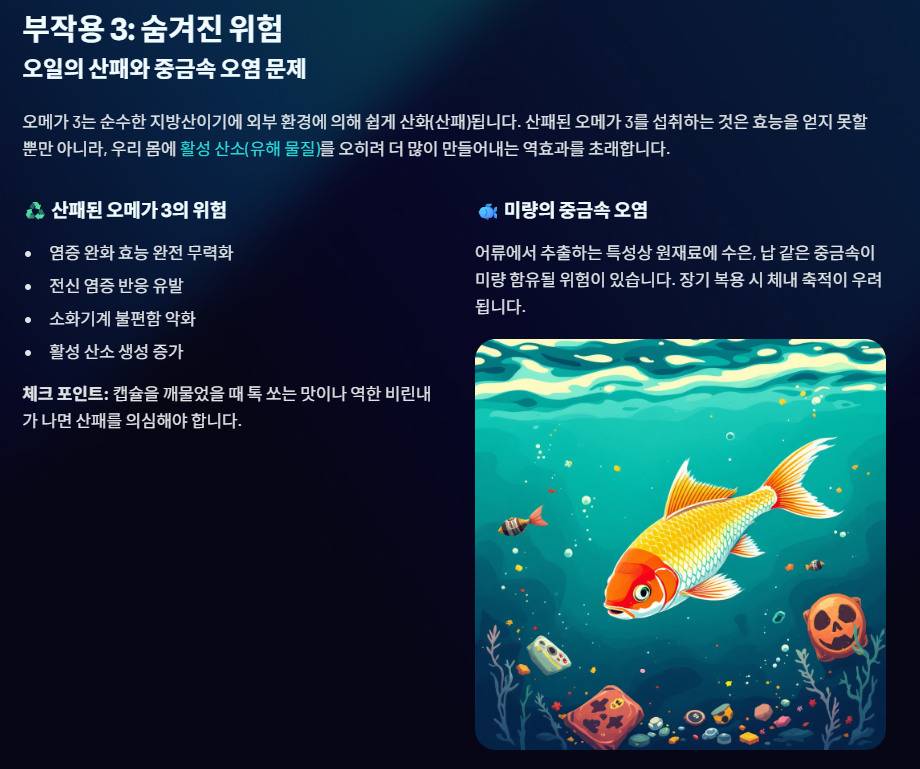 오메가 3는 '혈관 청소부'라 불릴 정도로 그 효능이 탁월합니다. 하지만 모든 영양제가 그렇듯, 오메가 3 역시 과다 복용하거나 품질이 좋지 않을 경우 예상치 못한 부작용이나 건강 위험을 초래할 수 있습니다.
