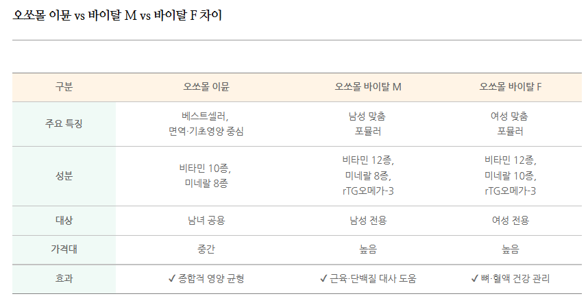 오쏘몰 제품 선택의 핵심은 **'복용 목적'**에 있습니다.