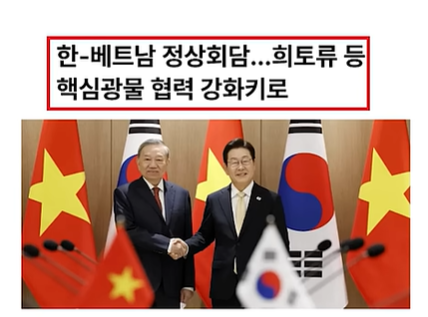 🧩 3. 한국–베트남 희토류 협의체 공식 출범 (2025.12.1)