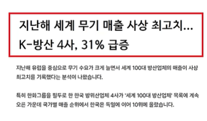 - 한국 방산 수출 구조적 확대