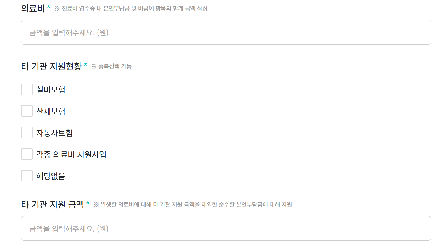 → 치료비가 3개월 이내 발생한 경우 소급 신청 가능합니다. - Q. 의료보험 혜택을 이미 받았는데 중복 지원되나요?