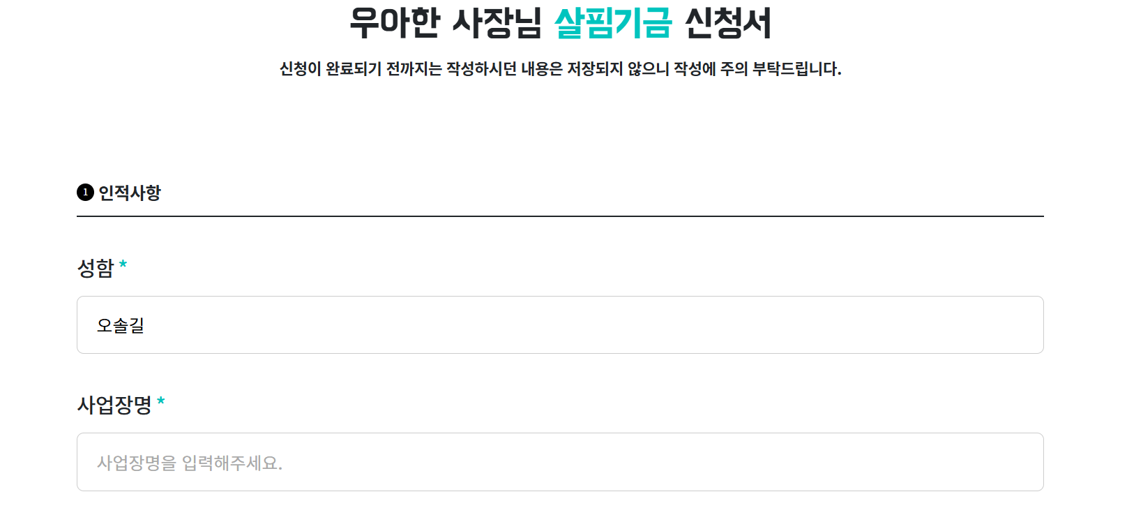 - 살핌기금 공식 누리집 접속 👉 https://woowasajangnim.or.kr/apply