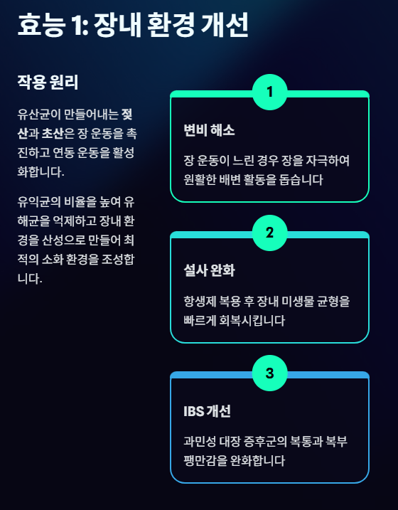 1. 핵심 효능: 장내 환경 개선 및 소화 기능 최적화