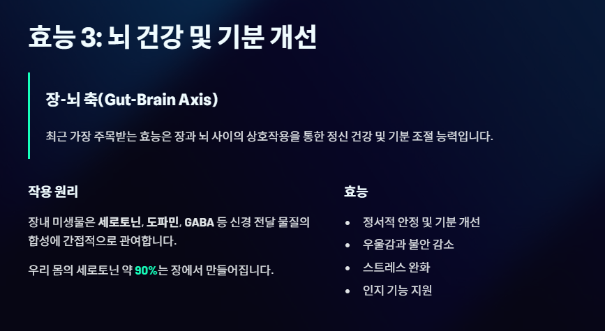3. 뇌 건강 및 기분 개선 (장-뇌 축 상호작용)
