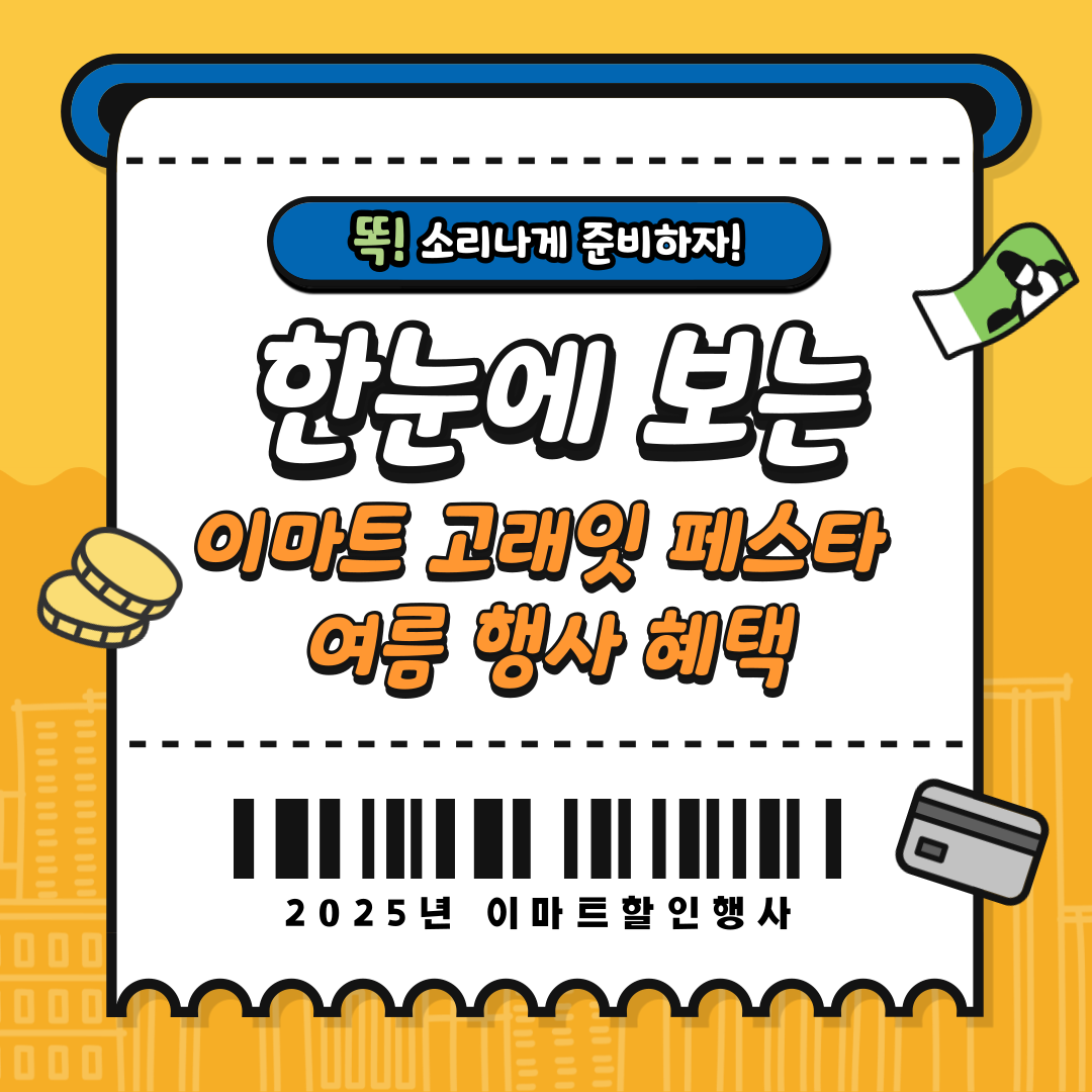 ‘고래잇 페스타’는 이마트의 대표 여름 대규모 할인행사입니다. 매년 7~8월에 진행되며, 식료품, 생필품, 전자제품까지 폭넓은 상품군을 대상으로 할인 이벤트가 펼쳐집니다. 이마트 트레이더스와 SSG닷컴에서도 동시에 진행돼 온라인에서도 혜택을 받을 수 있습니다.