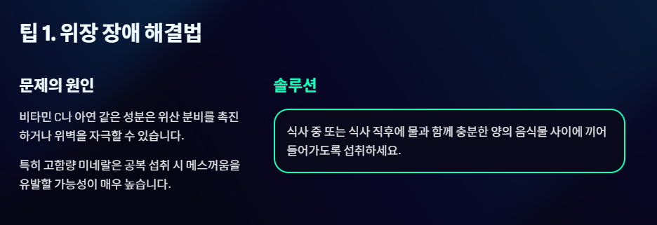 이뮨 비타민의 고함량 성분은 간혹 위장 장애나 다른 불편함을 유발할 수 있습니다. 이를 해결하는 실질적인 팁을 숙지하는 것이 중요합니다.