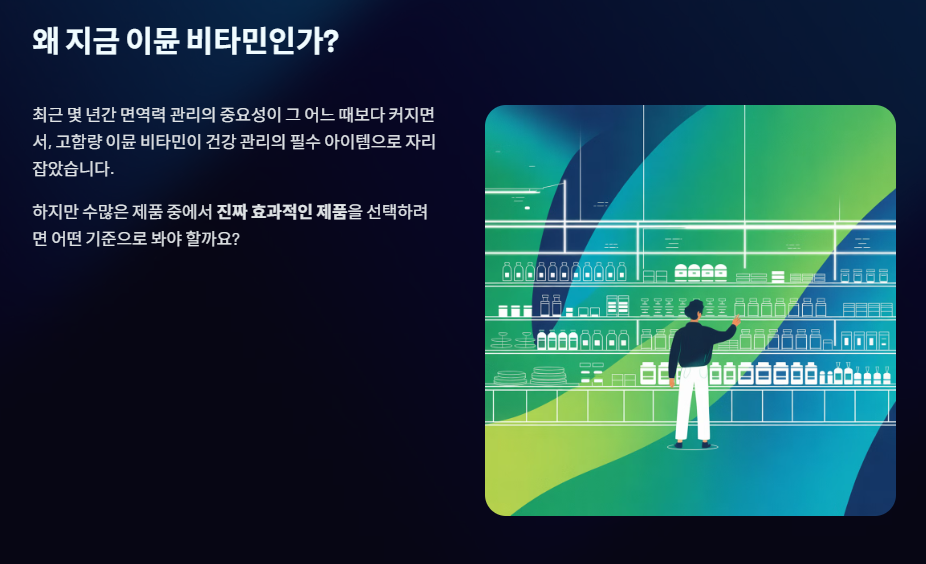 하지만 수많은 이뮨 비타민 제품을 비교하다 보면, 어떤 성분을 중점적으로 봐야 할지, 복잡한 앰플형(액상+정제)이 과연 흡수에 유리한지 헷갈리기 마련입니다.