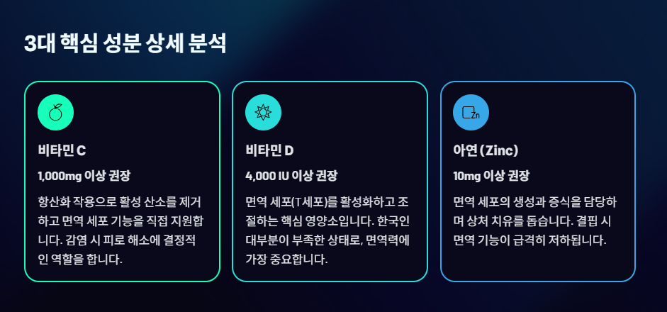 1. 비교 기준 1: 이뮨 비타민의 '3대 핵심 성분' 함량
