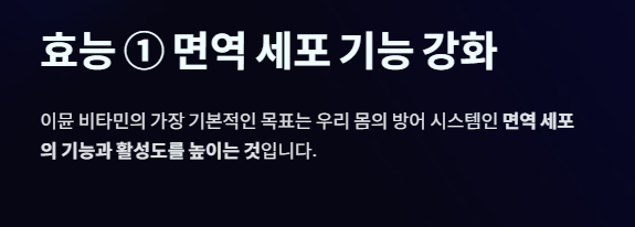 - 효능: 감기나 감염 증상이 나타날 때 비타민 C를 고용량으로 섭취하면, 활성 산소로 인한 세포 손상을 최소화하고 염증 반응을 완화하며, 면역 세포의 수명을 연장하는 데 도움을 줍니다.