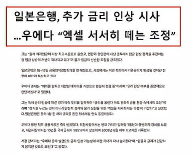 일본 금리 인상은 한국 시장과 직접 충돌하지 않는다.