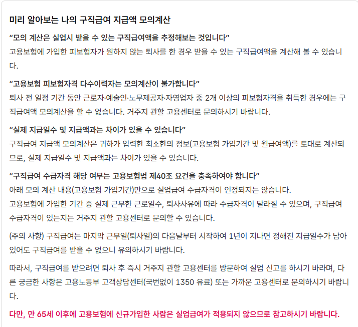 지원금 모의계산(실업급여) – 내 구직급여 예상금액 확인하기