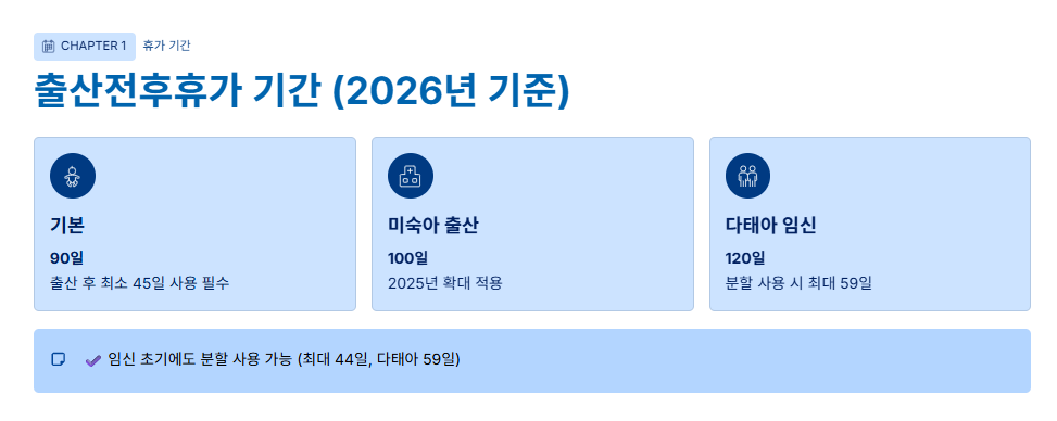 📌 출산전후휴가 기간 (2026년 기준)