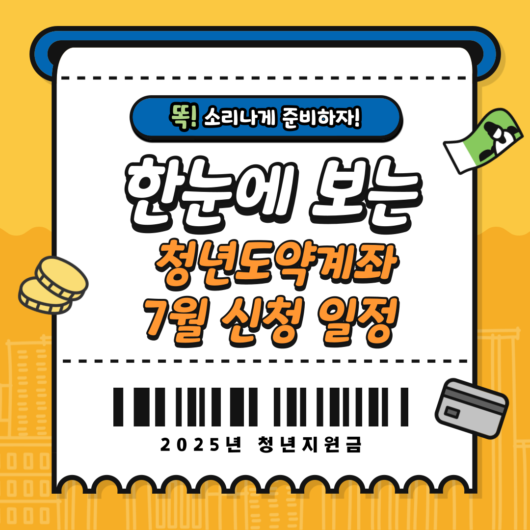 청년도약계좌는 청년들의 자산 형성을 돕기 위한 중요한 정부지원금 제도입니다. 7월 일정에 맞춰 신청과 준비를 잘 해두어야 생활 안정과 미래 설계를 위한 디딤돌로 활용할 수 있습니다. 이번 달 일정과 절차를 정확히 확인해, 놓치지 않도록 준비해보세요!