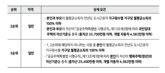 ※ 소득·자산 기준은 신청 유형(청년, 신혼부부)에 따라 다르므로 공고문 세부 기준을 확인하시기 바랍니다.