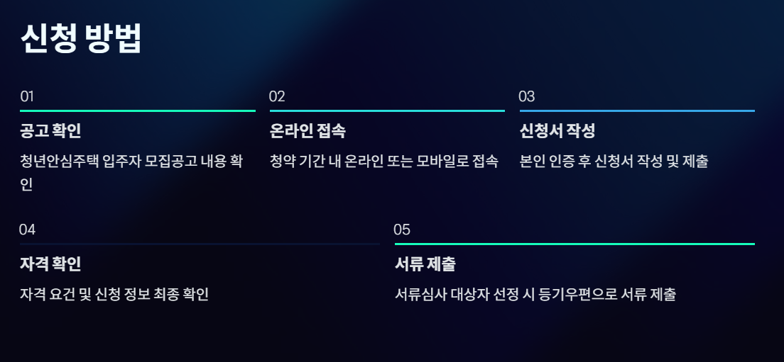 ※ 소득·자산 기준은 신청 유형(청년, 신혼부부)에 따라 다르므로 공고문 세부 기준을 확인하시기 바랍니다.
