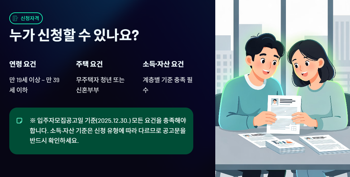 입주자모집공고일 기준(2025.12.30.) 아래 요건을 모두 충족해야 합니다.