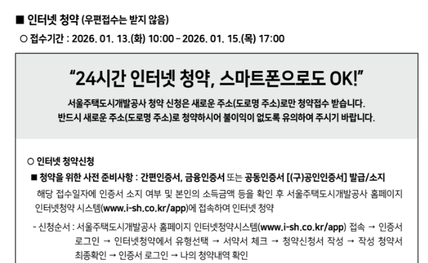 - 청약 접수일: 2026년 1월 13일(화) 10:00 ~ 1월 15일(목) 17:00